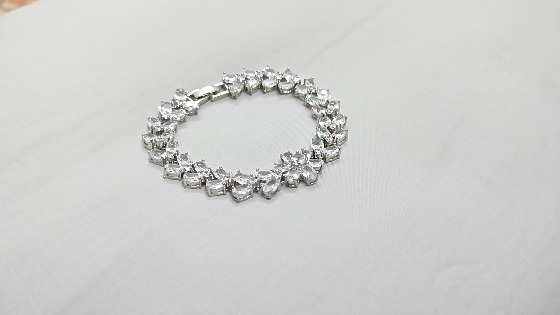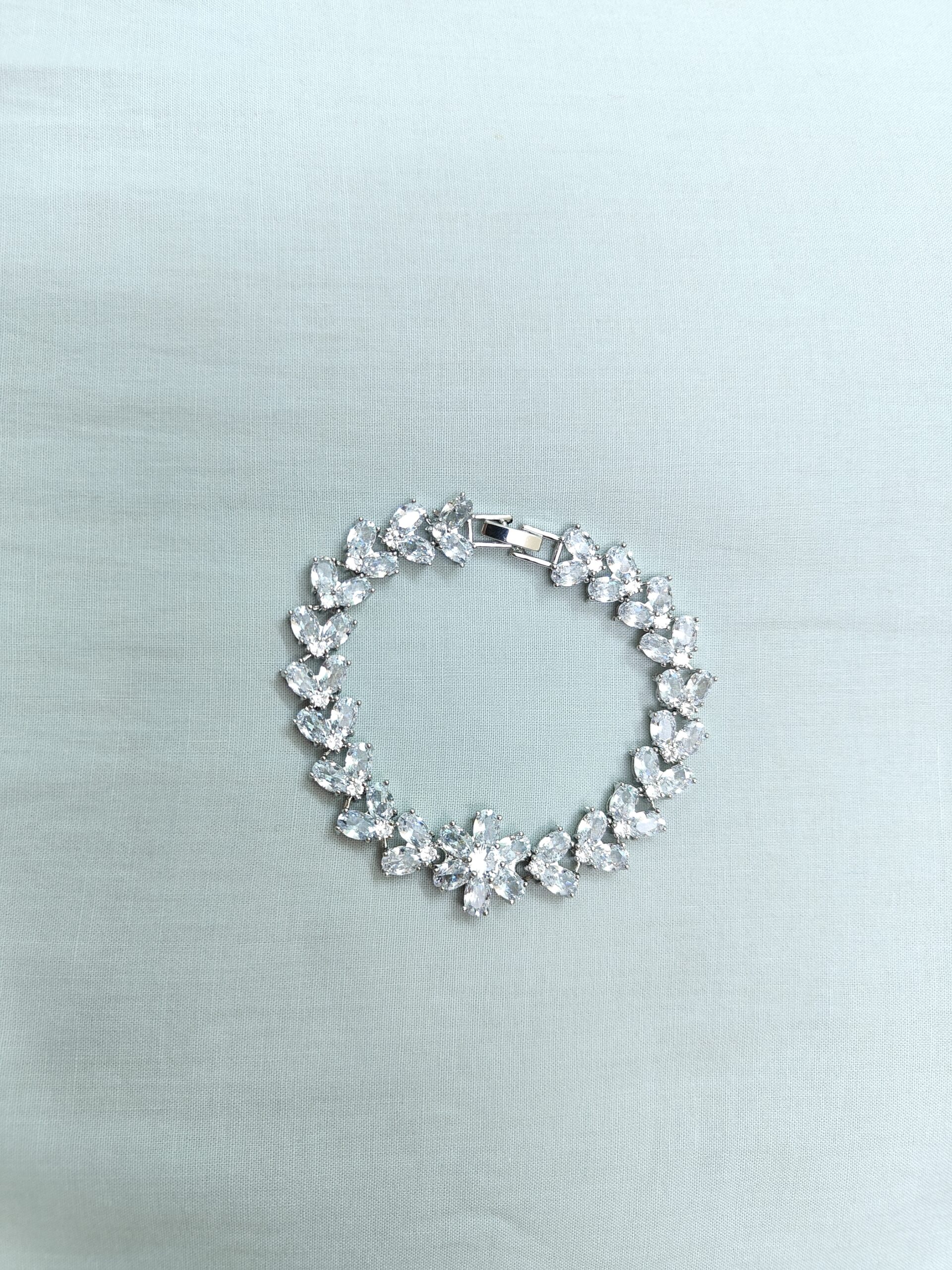 The Crystal Bloom Bracelet is adorned with fine American Diamonds arranged in subtle floral clusters, catching light with every movement.